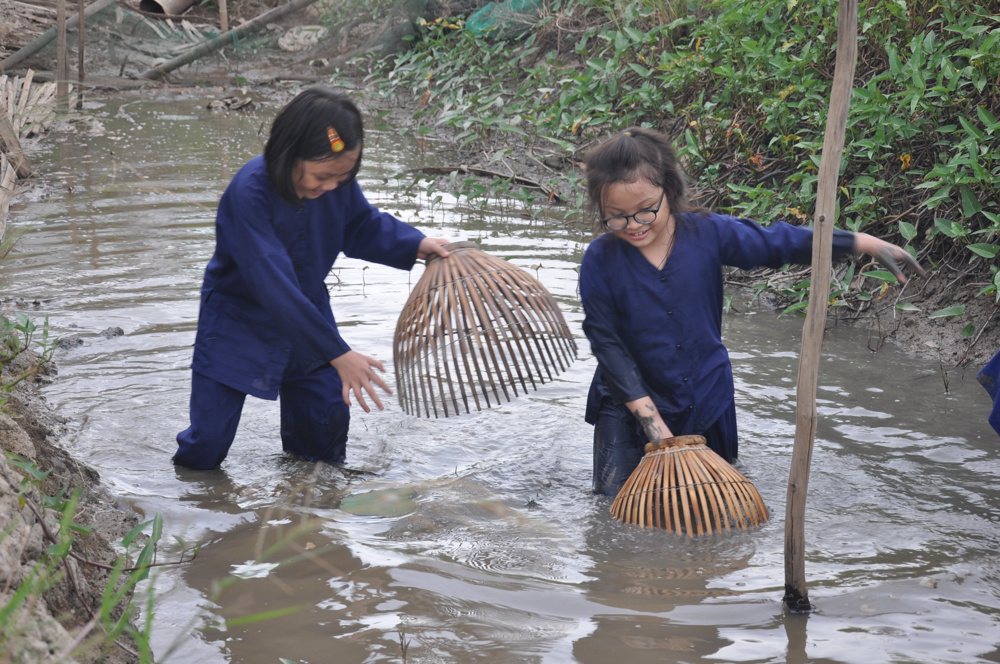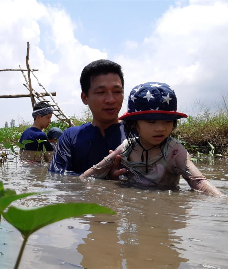 Chiều nay em đi bắt cá về cho má nấu canh chua!