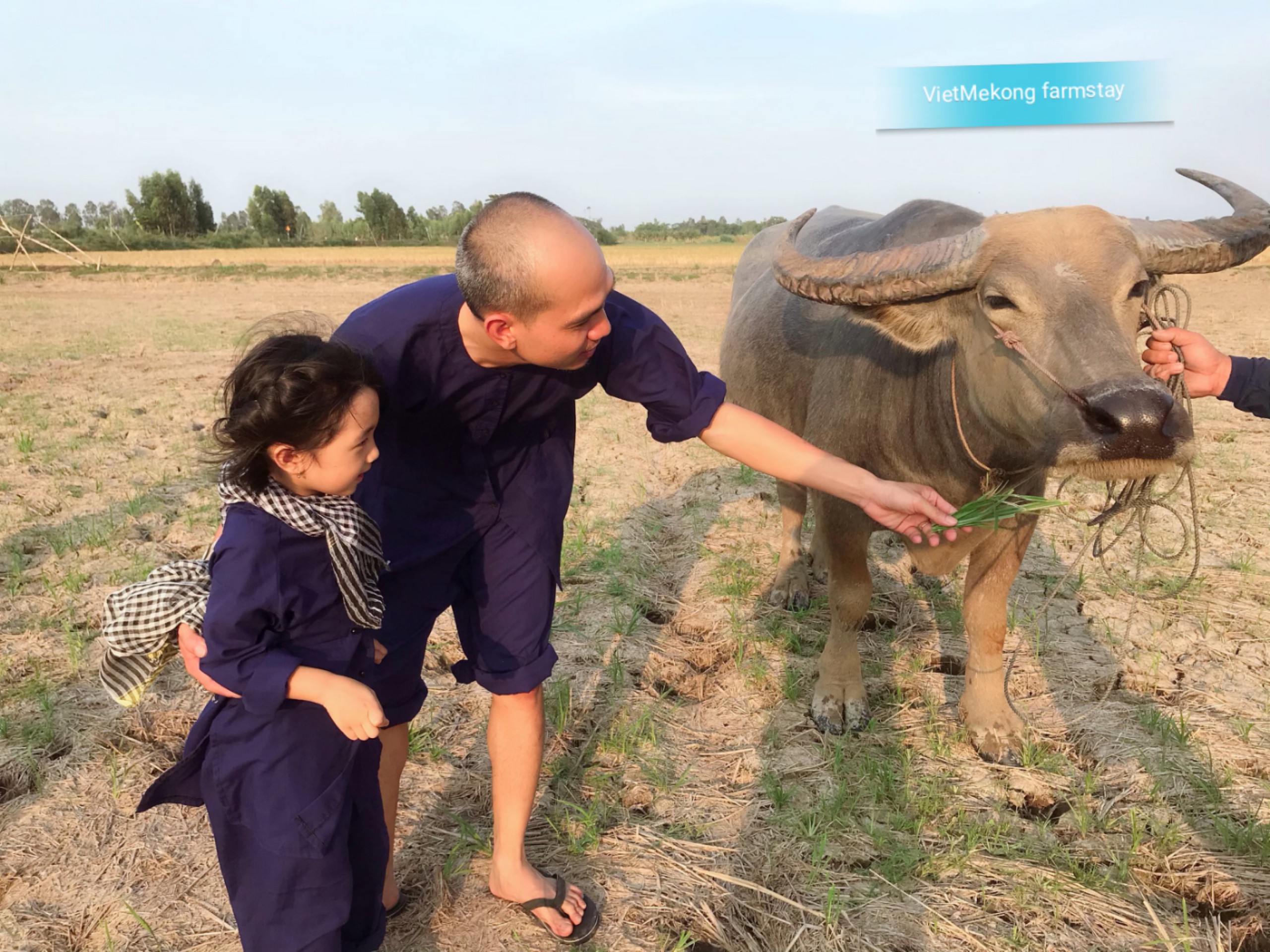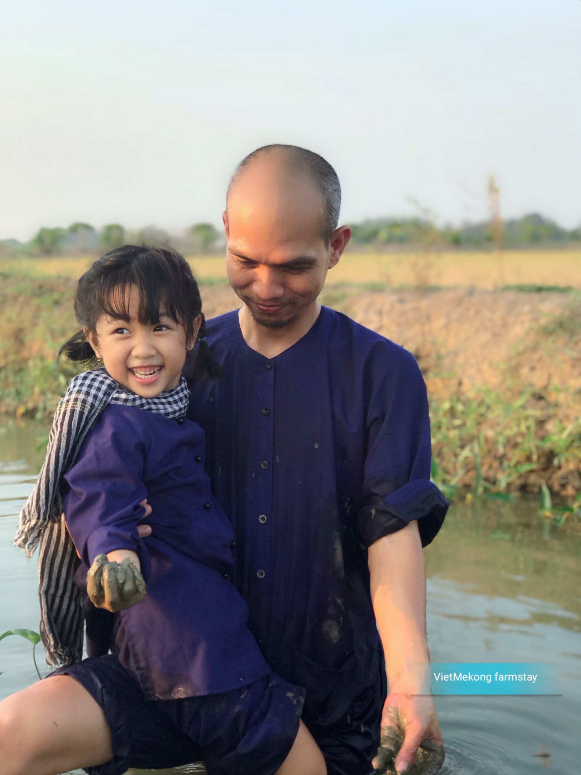 Chân con hôn lên mặt đất, vẫy vào bùn, cười với hoa sen, chơi với trâu tại Vietmekong farmstay