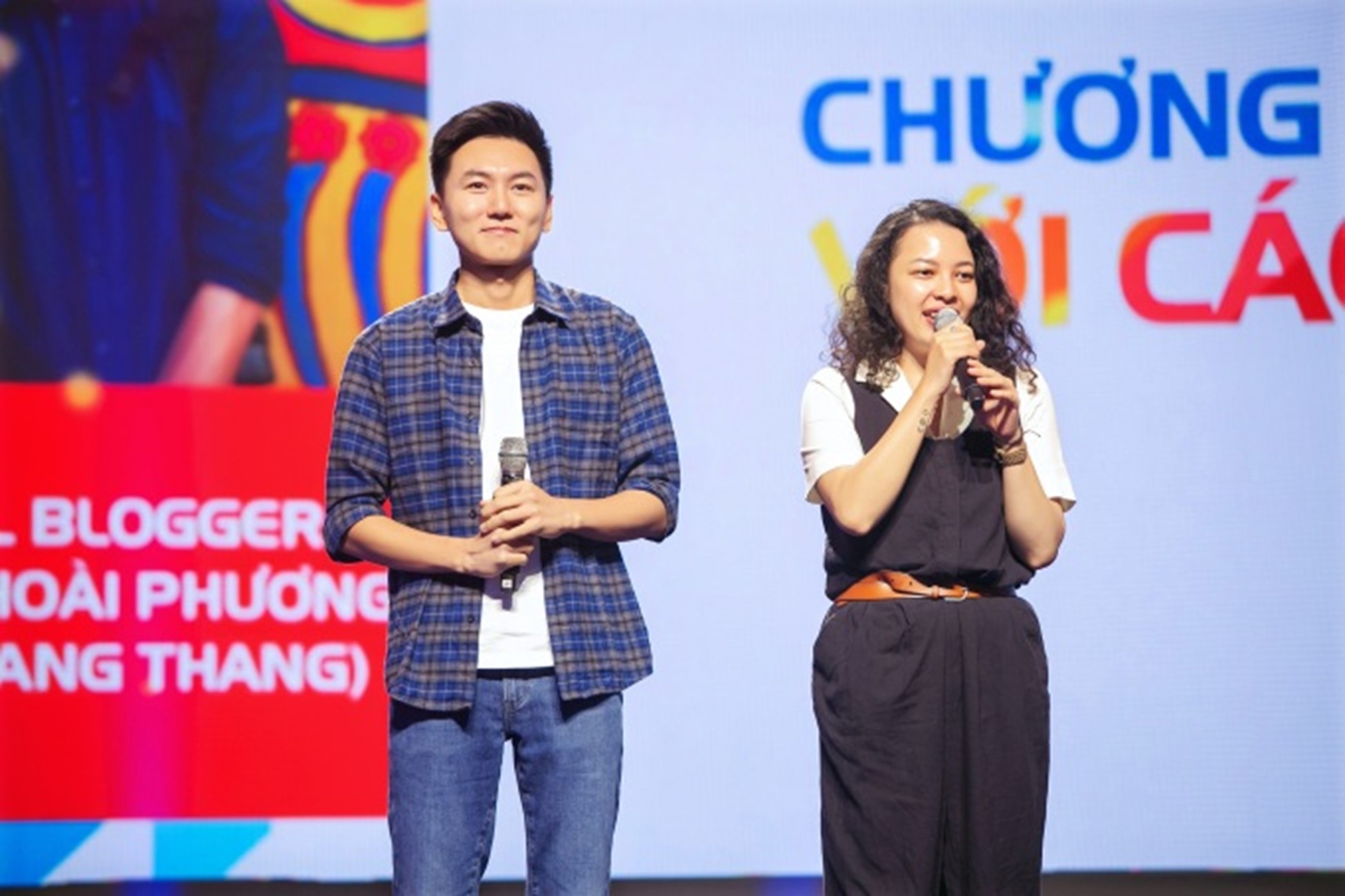 Khoai Lang Thang và Nhị Đặng chia sẻ tại chương trình giao lưu Ngày hội Du lịch TP HCM lần thứ 17. Ảnh: Sở Du lịch TP HCM